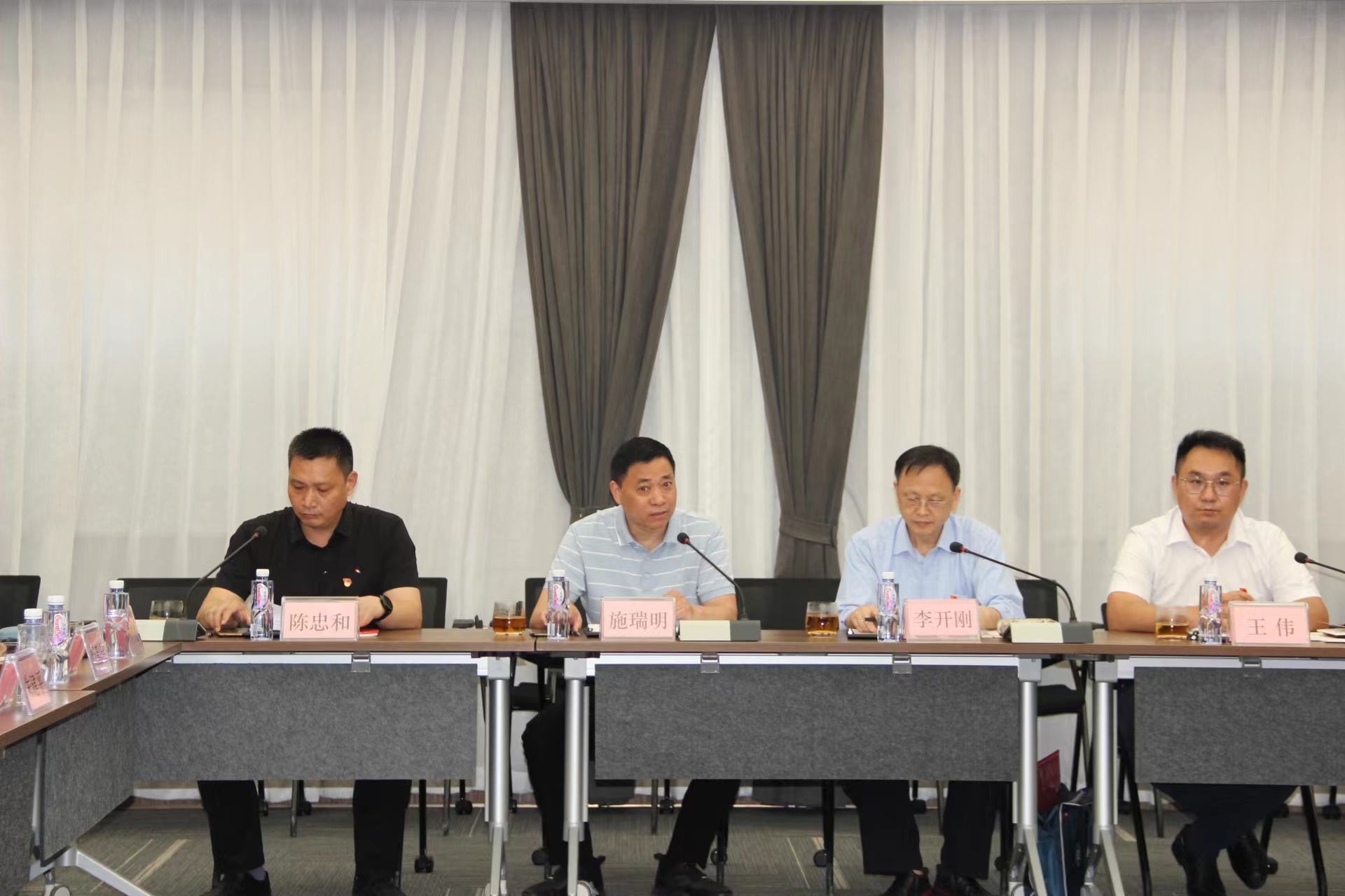 ▲李开刚(右三)听取凯发k8官网党支部党建情况介绍