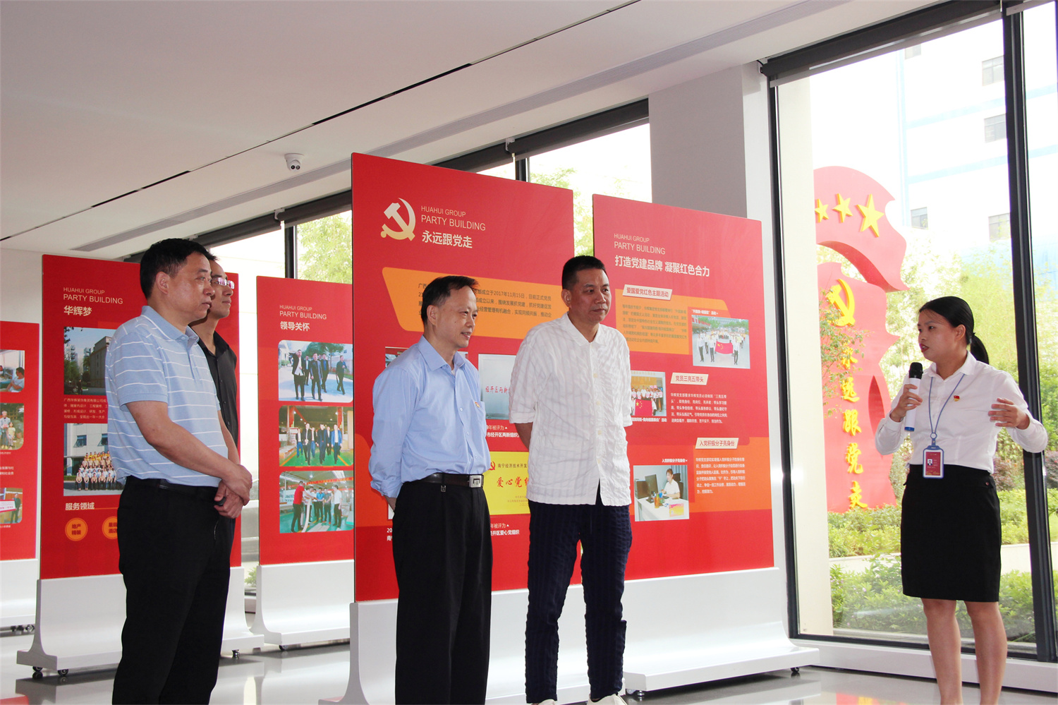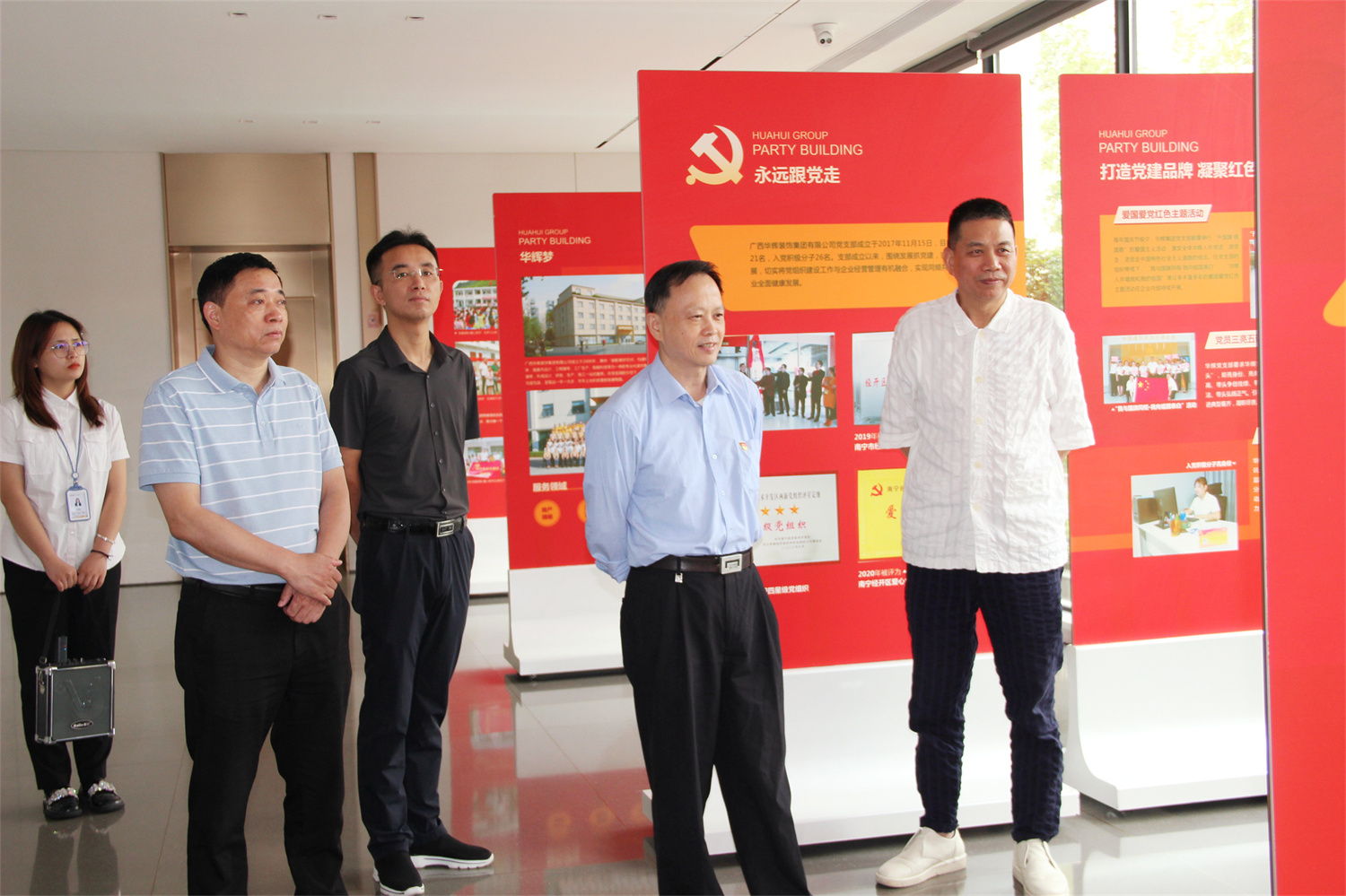 ▲李开刚(右二)参观凯发k8官网党建阵地