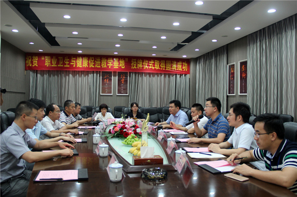 在南宁市安监局积极推动下,首个“职业卫生与健康促进教学基地”,6月28日,在广西凯发k8官网集团旗下公司——广西大景商业道具有限公司正式挂牌成立。据悉,这也是广西首个校企合作职业卫生与健康促进教学基地。该教学基地由广西医科大学公共卫生学院与广西大景商业道具有限公司合作成立,旨在建立一个公共卫生专业人才培养、实践和科研的平台。