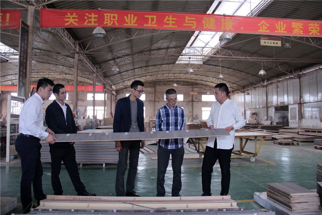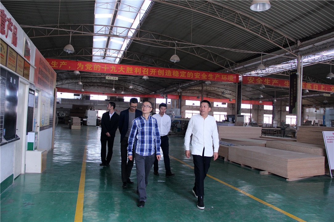 在杨景忠董事长的带领下,黄赞副主任、梅嵩科长首先深入凯发k8官网生产基地,了解凯发k8官网集团装修固装配套技术创新、标准化管理、环保节能等生产经营情况。