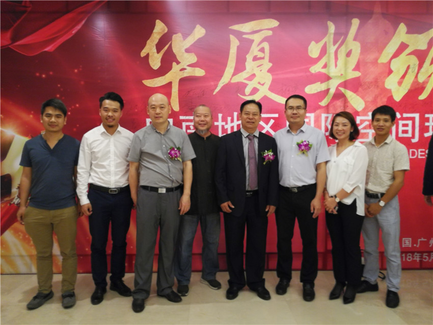 ▲凯发k8官网获奖设计师与广西建筑装饰协会庞耀国会长(左二)合影