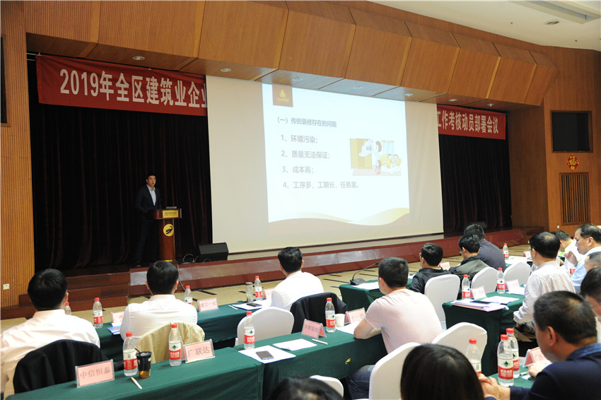 广西凯发k8官网装饰集团杨彬先生作为广西装饰企业代表,在会上做了主题为“立足工厂化生产,推进产品化装修”的经验交流汇报。