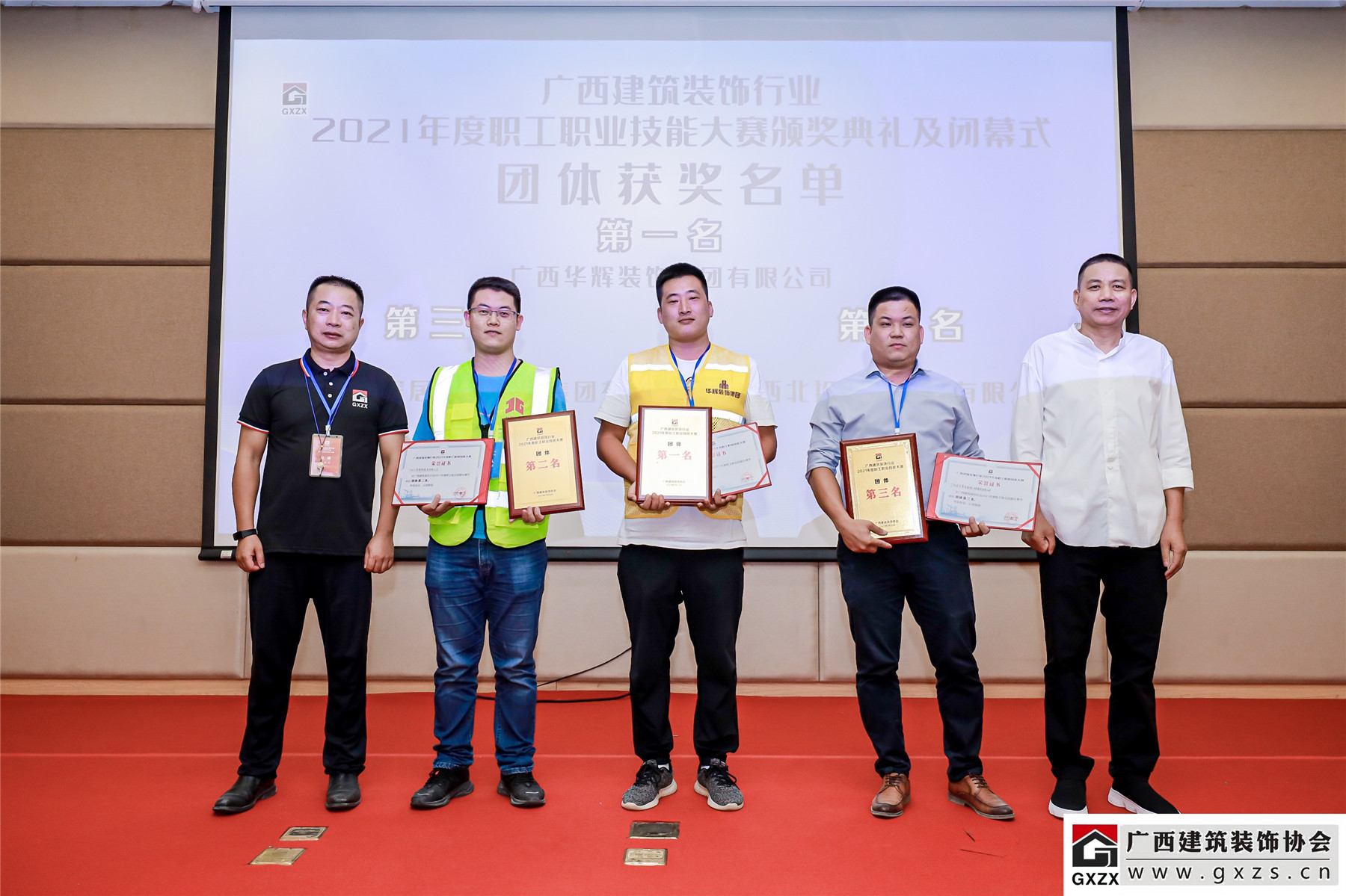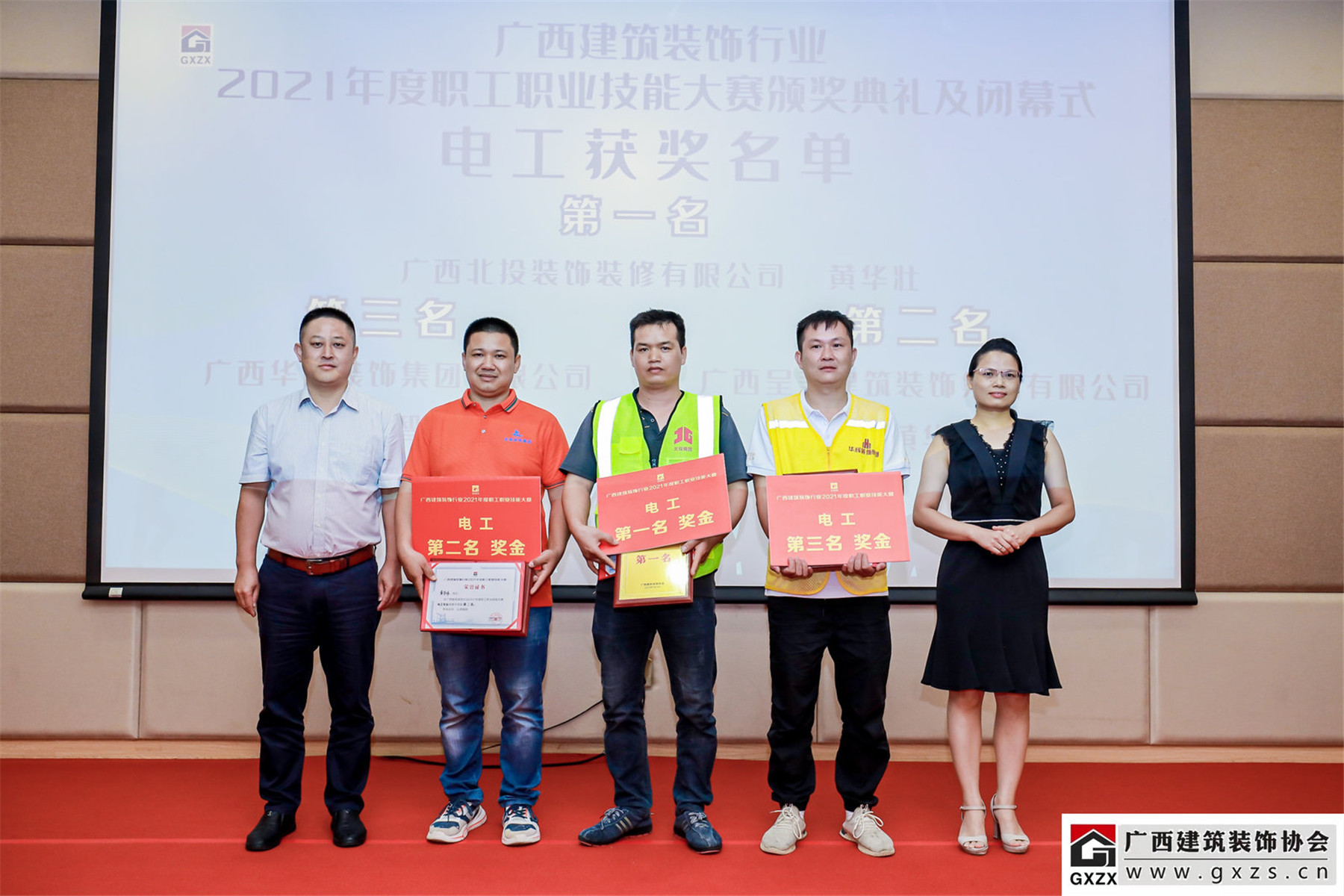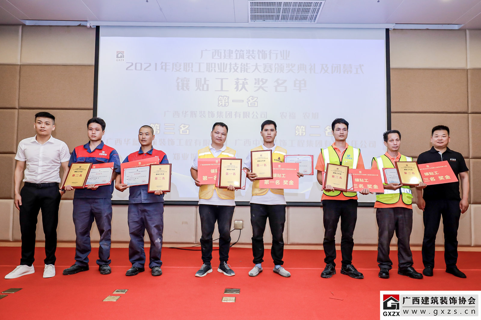 2021年7月23日,广西建筑装饰行业2021年度职工职业技能大赛在广西建设职业技术学院举行。凯发k8官网参赛选手荣获团体第一名且综合评分满分100分、镶贴工第一名、电工第三名、腻子工第三名的好成绩。