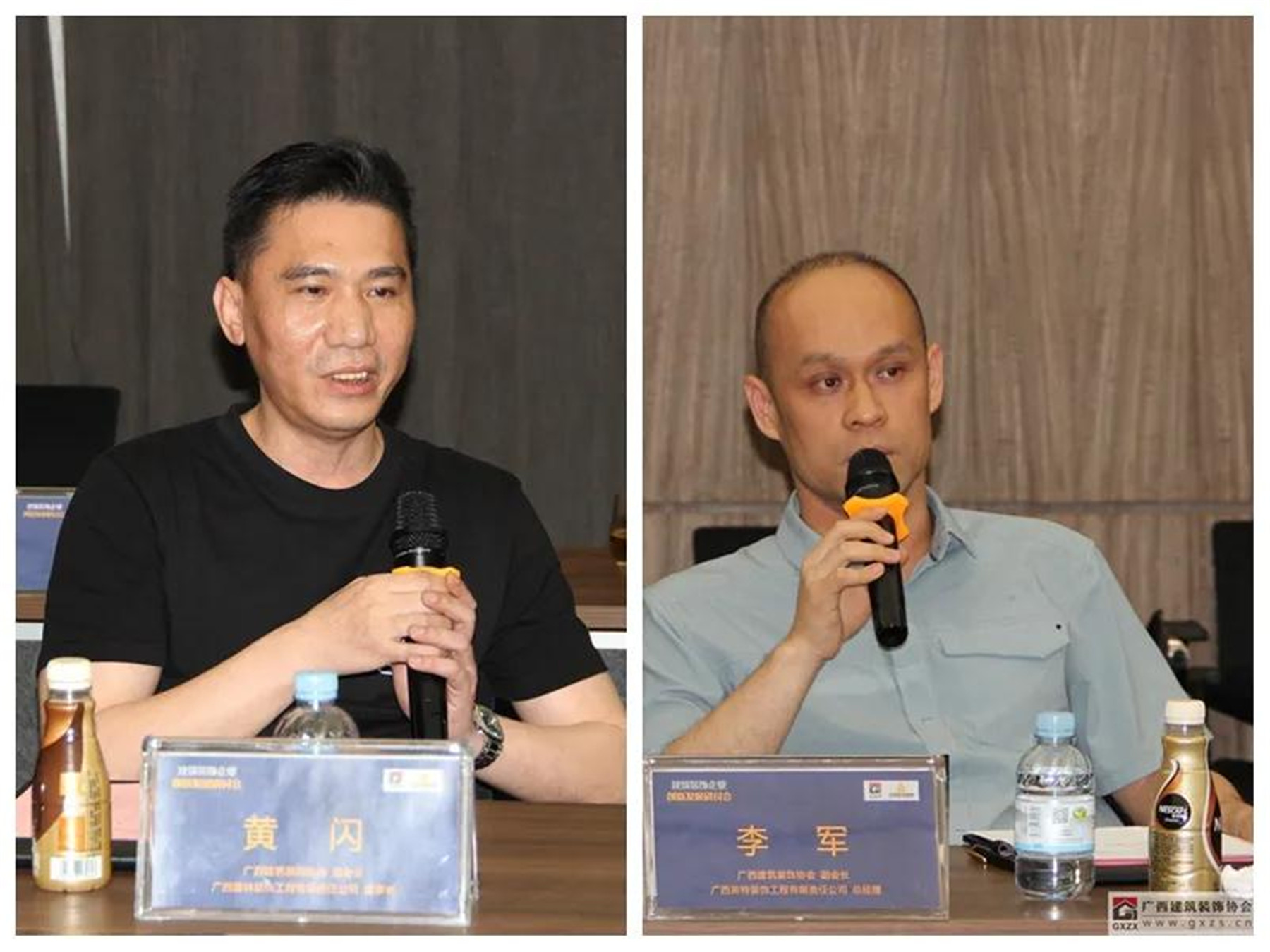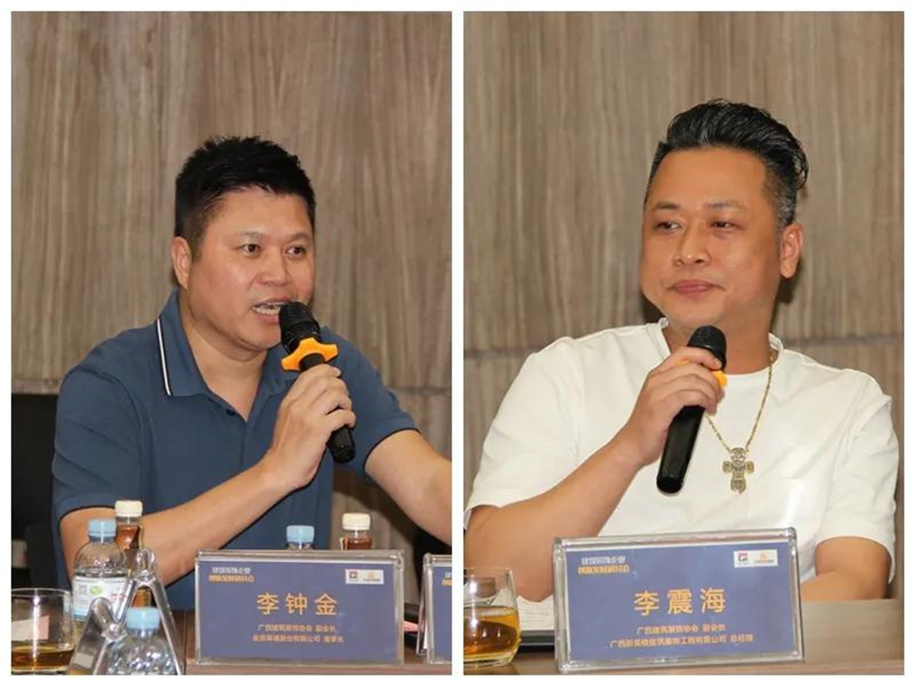 ▲(左)副会长、广西建林装饰工程有限责任公司董事长 黄闪,(右)副会长、广西英特装饰工程有限责任公司总经理 李军