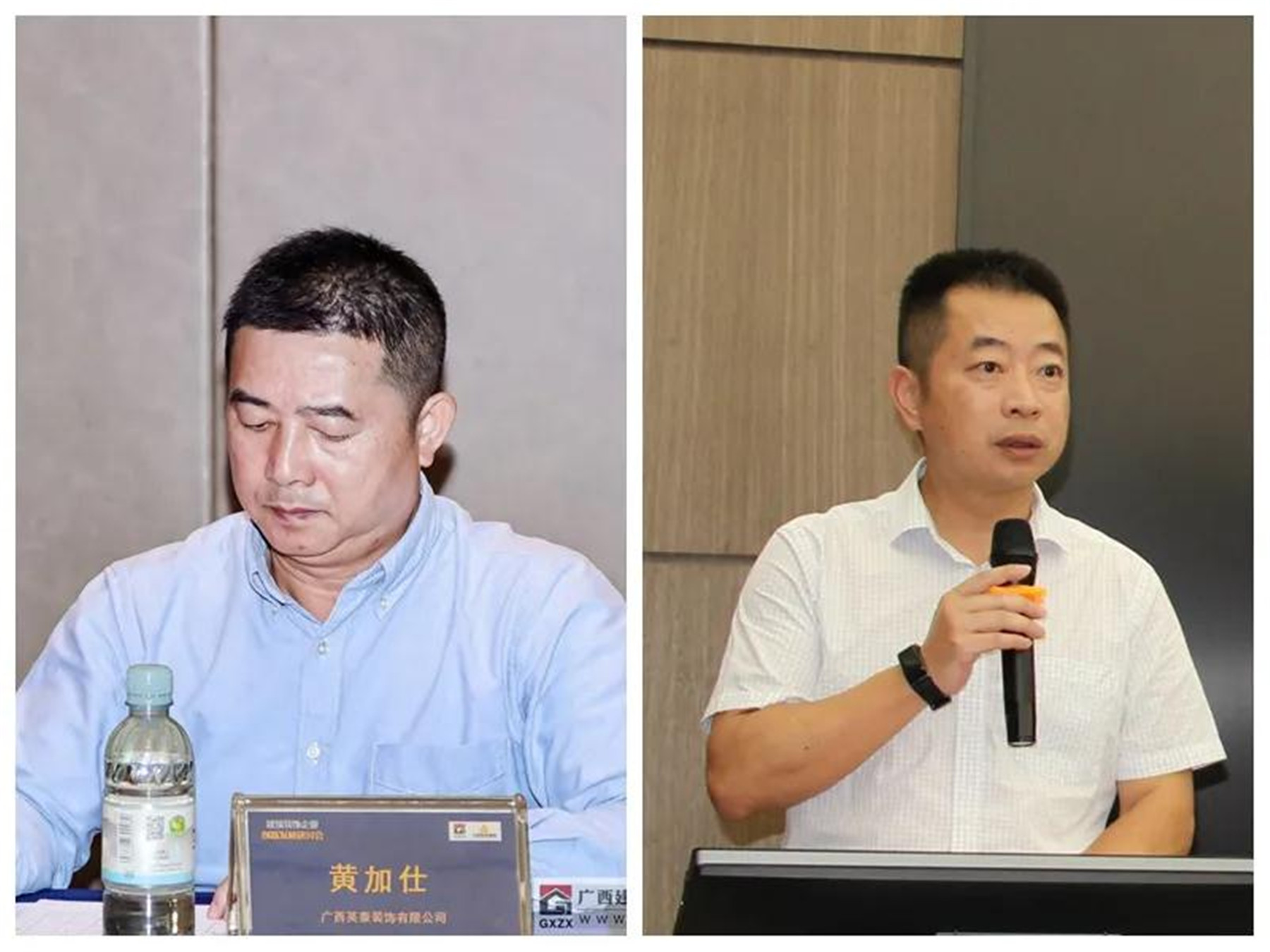 ▲(左)监事长、广西英泰装饰有限公司总经理 黄加仕,(右)广西建筑装饰协会副秘书长 谭谦