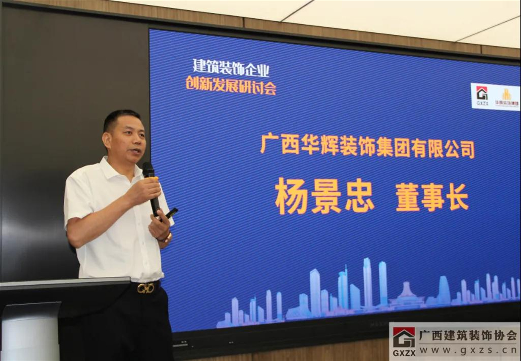 协会副会长、广西凯发k8官网装饰集团有限公司董事长杨景忠在会上分享了“三驾马车驱动凯发k8官网转型升级”的重要作用。