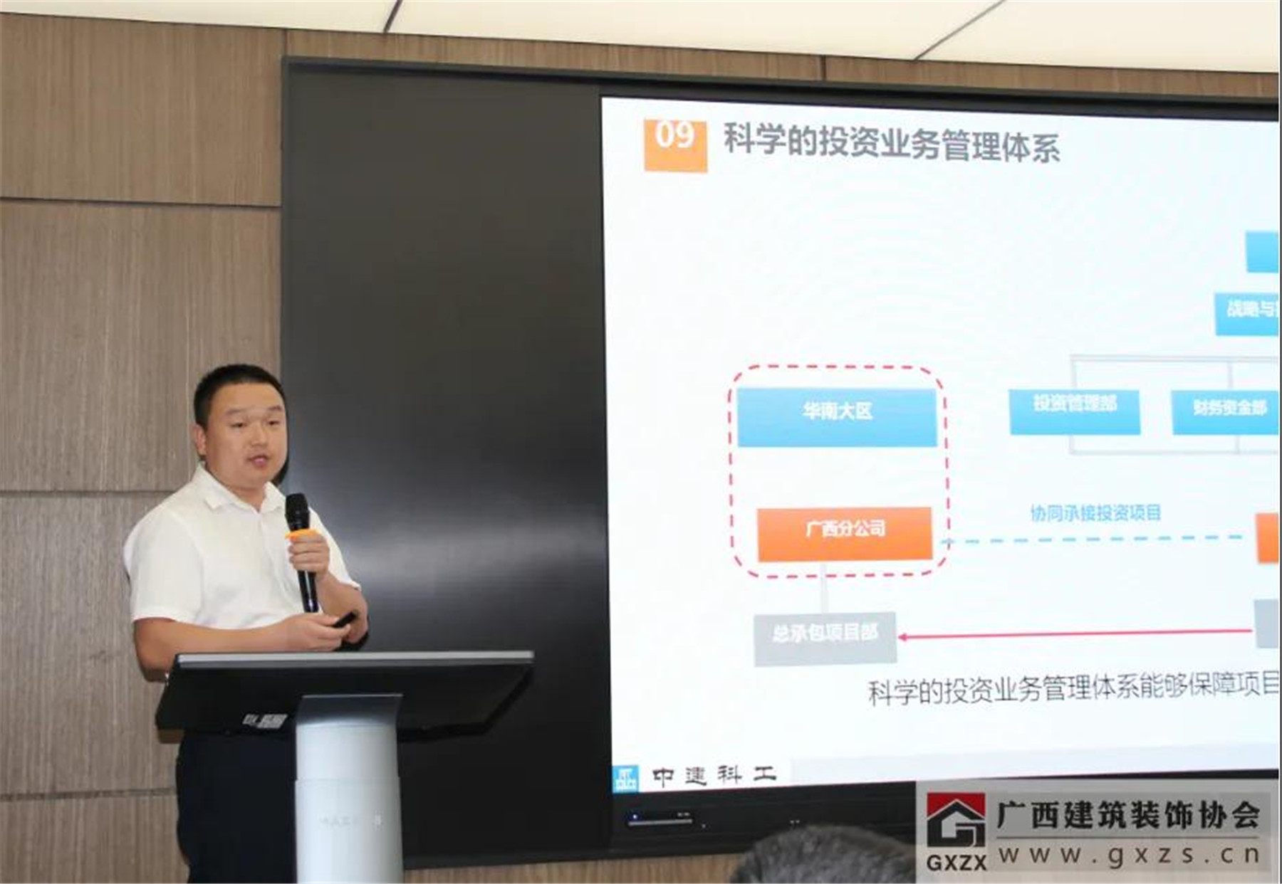 中建科工集团有限公司华南大区装饰幕墙中心总监胡健华在会上做了“PPP项目管理分享交流”。