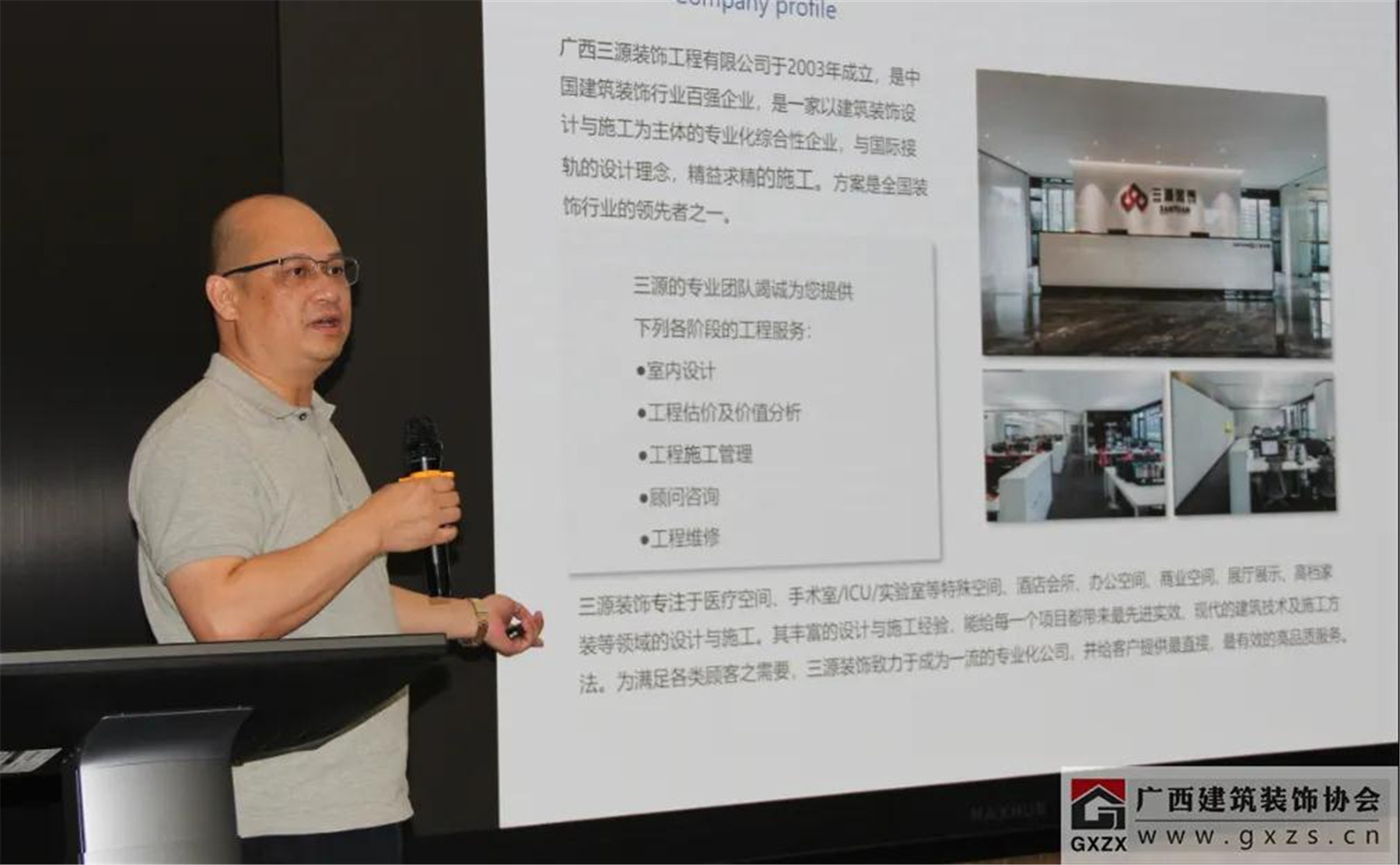 广西三源装饰工程有限公司副总经理陈远立为与会嘉宾做了“EPC项目经验分享”。