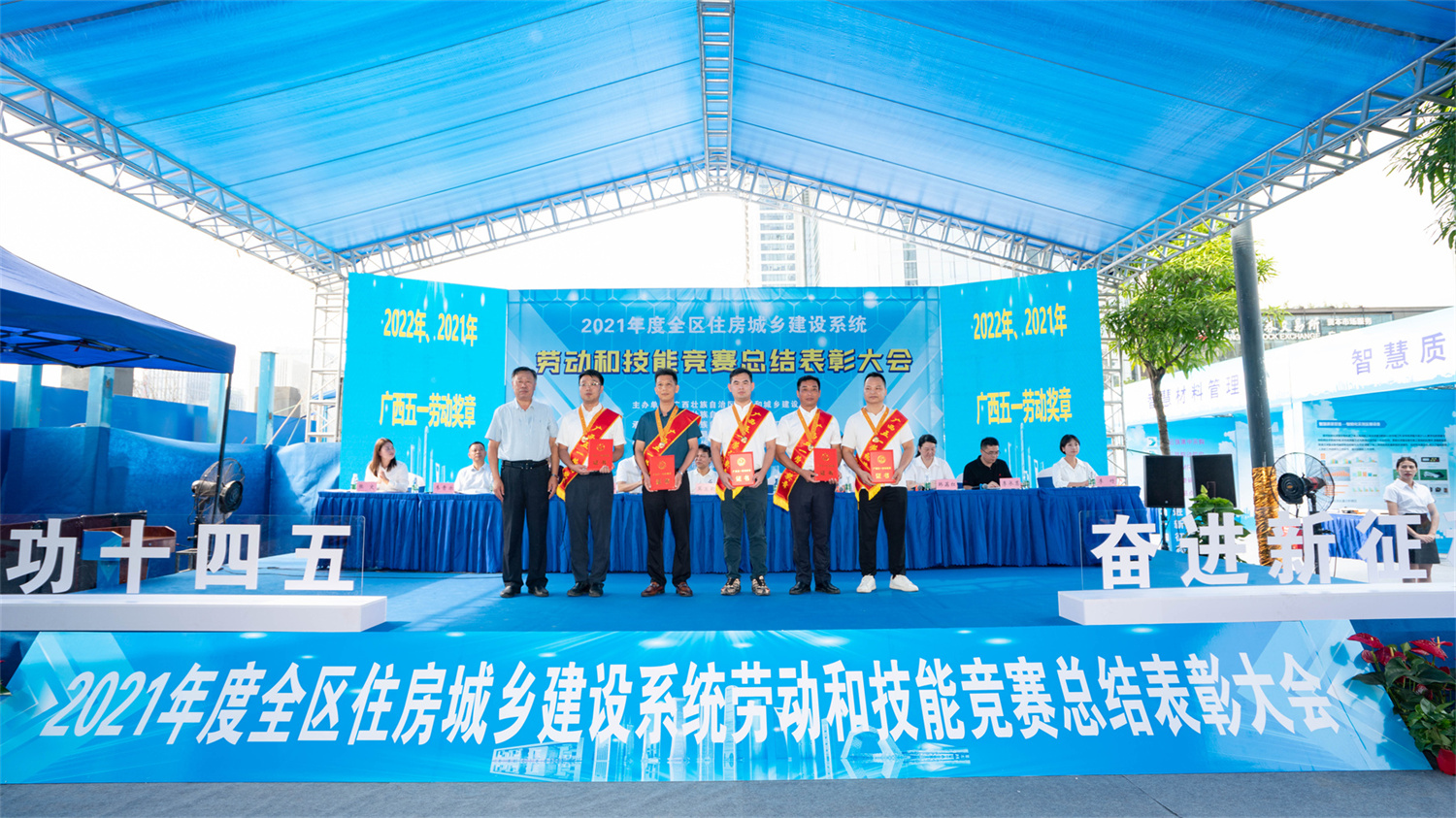 本次活动对全区住房城乡建设系统2021年度荣获广西五一劳动奖章奖状和广西“工人先锋号”的集体与个人、劳模和工匠人才创新工作室、“广西工匠”“广西技术能手”、全区住建系统“五一巾帼标兵岗”和“五一巾帼标兵”以及2021年度全区住房城乡建设系统城市更新项目建设示范性劳动和技能竞赛的优胜单位、优胜班组和优胜个人进行表彰。5个先进单位和个人从企业管理、个人工作方法、争先创优等方面作经验分享。