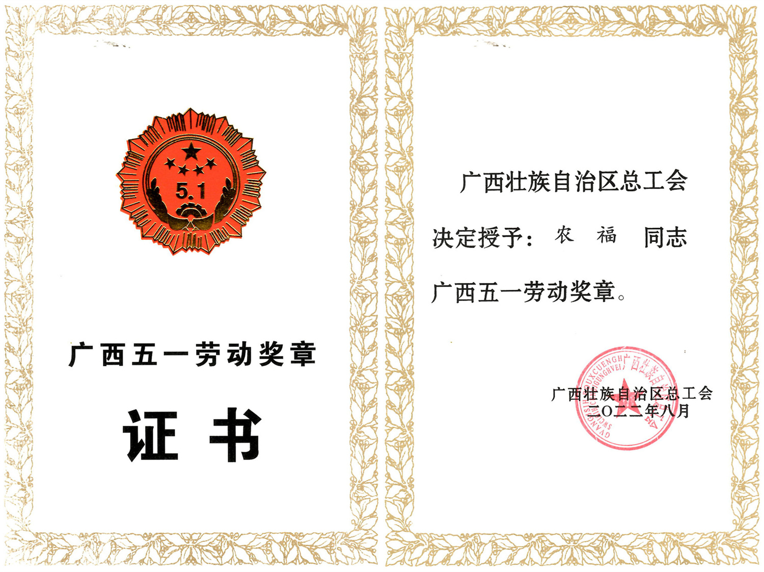 2022年8月25日,2021年度全区住房城乡建设系统劳动和技能竞赛总结表彰大会暨“红色工地”观摩会在中建三局一公司南宁中银金融中心项目举办,凯发k8官网集团农福同志荣获广西五一劳动奖章奖状。