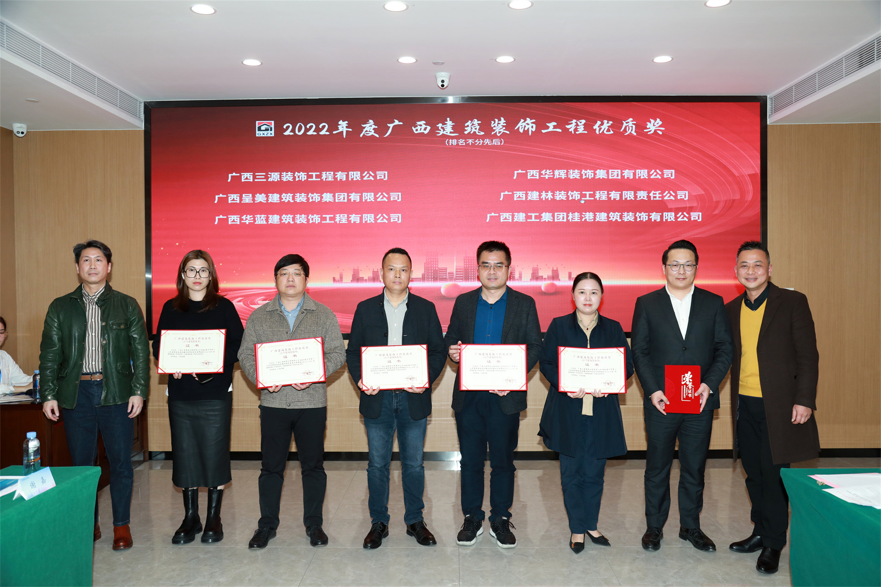 会议宣读并表彰了“2022年广西建筑装饰工程优质奖(广西建筑装饰工程最高质量奖)”获奖项目,凯发k8官网集团四个项目荣获表彰,分别为:广西社区养老示范中心装修工程设计施工总承包项目,金城广场一期工程,广西北部湾银行五象总部大厦非标准层装修项目,盛天西城希尔顿欢朋酒店客房、公共区域装饰装修工程。