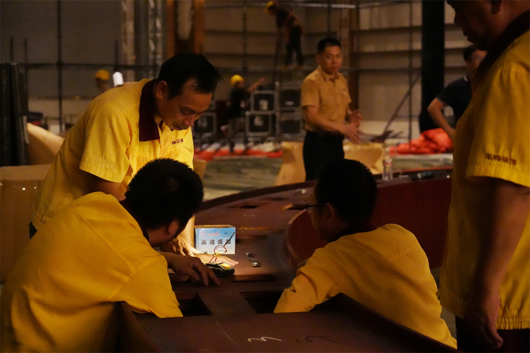 接到任务后,凯发k8官网深感使命光荣、责任重大。大圆桌直径12米,周长37.69米,超大型的弧形结构增加了生产难度,且工期非常紧张。为有效缩短工期,凯发k8官网采用工厂工业化部品部件,将超大型的弧形结构逐一分解,拆分工艺、结构和形体。