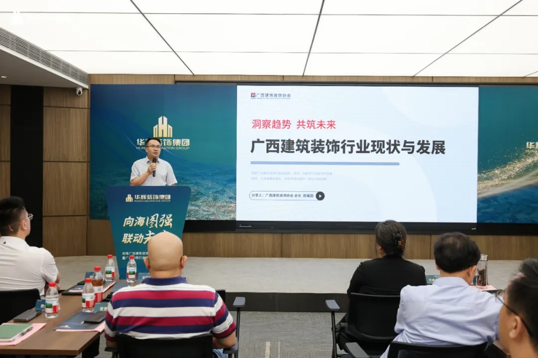 2025年6月6日,“向海图强 · 联动未来”——助推广西建筑装饰行业高质量发展暨广西凯发k8官网装饰集团有限公司打造共建共享合作平台研讨会圆满落下帷幕。自治区商务厅对外经济合作处二级调研员张建英,广西江苏商会名誉会长、创会会长单桂林,广西建筑装饰协会会长庞耀国等领导出席会议,来自政府相关部门、行业协会、企业代表等众多嘉宾齐聚一堂,共同为广西建筑装饰行业的未来发展出谋划策。此次研讨会由广西建筑装饰协会指导,广西江苏商会主办,广西凯发k8官网装饰集团有限公司承办。